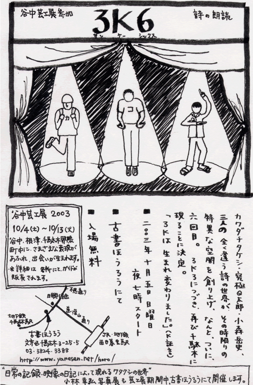 小林大吾さんの明晰さ、暁方ミセイさんのテキストの正確さ、強さとチャーミングな表情のギャップ、ジュテーム北村氏の企まざる批評性、等々。どのアクトも見ごたえ、聴きごたえがありました。